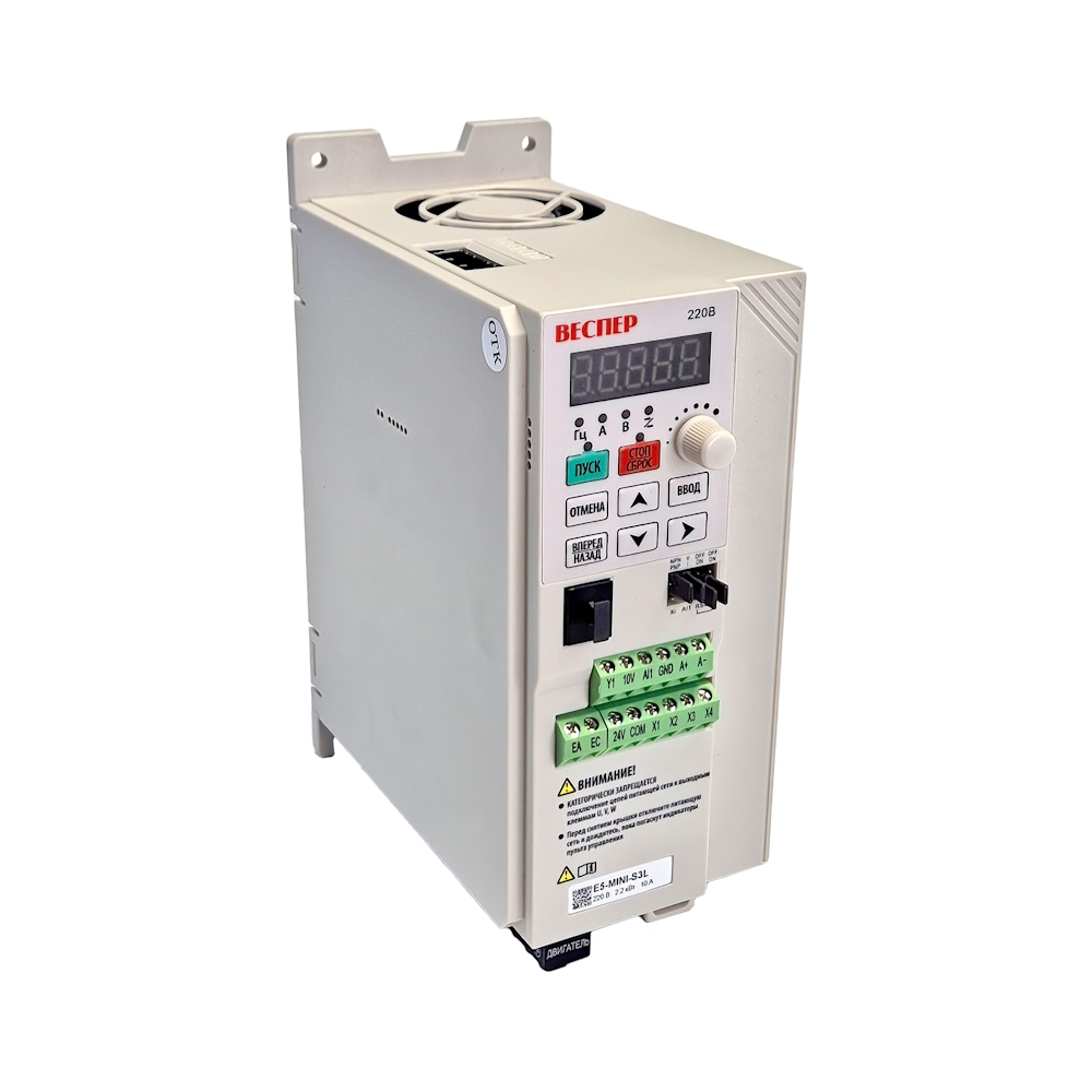 Модель E5-MINI-S3L 2,2кВт 220В имеет широкий функционал и современный дизайн с встроенной панелью управления на русском языке с цифровым потенциометром для задания частоты.