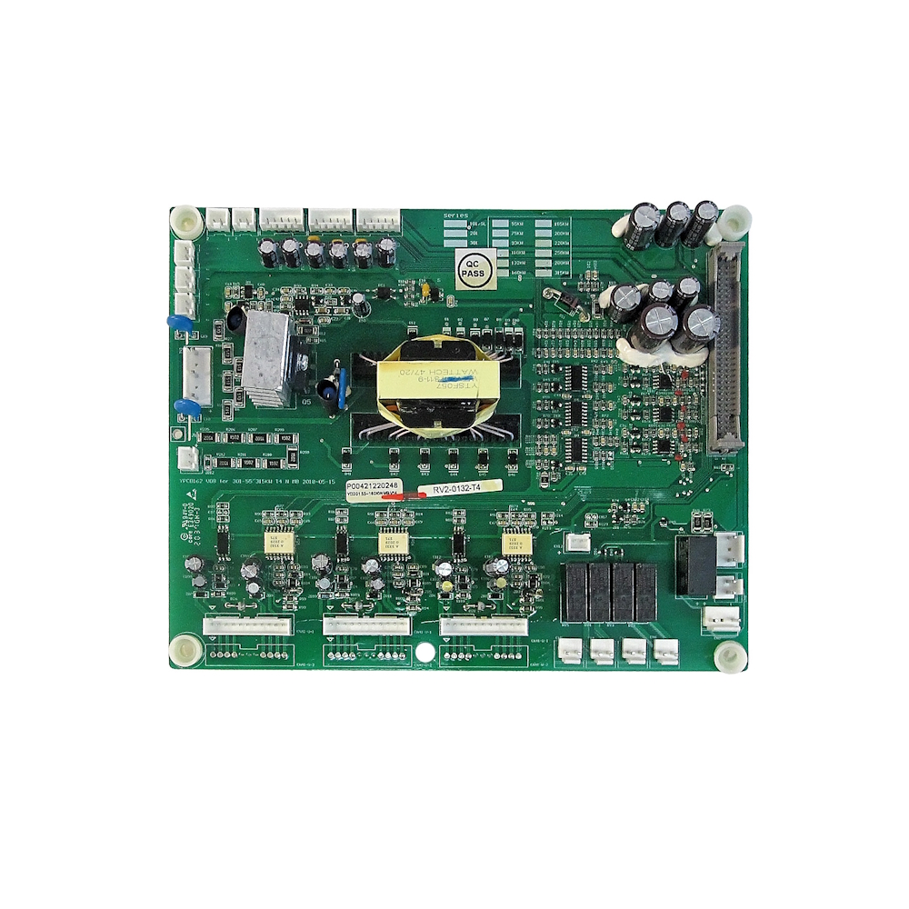 Плата драйверов Р8402-175H предназначена для формирования сигналов управления модулями IGBT, контроля выходных токов и сетевого напряжения, управления работой цепи предзаряда, а также для обеспечения составных элементов преобразователя питающим напряжением. Входит составным элементом в преобразователи частоты E4-8400-150H.