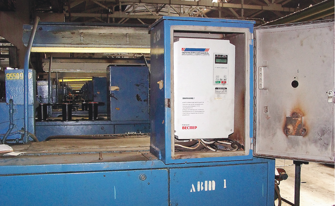 — В настоящий момент на заводе установлено порядка 200 частотных преобразователей «Компании Веспер», и в будущем, надеюсь, будет еще больше. Полсотни преобразователей работают на станах мокрого волочения. Причем в комплектацию станов частотные преобразователи до проведения модернизации не входили. Также установлены частотные преобразователи с обратной связью по давлению на двигателях насосных станций — это горячая, холодная, кислая вода, шлам. На намотках термоагрегатов установлено несколько десятков преобразователей взамен вышедших из строя частотных преобразователей фирмы «Сименс».