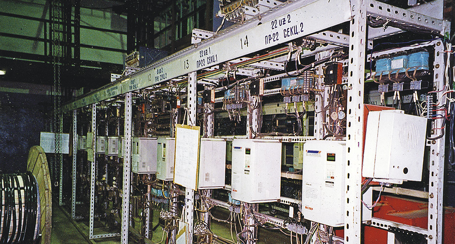 В.Р.: Есть у нас еще один интересный опыт работы с «Компанией Веспер». Для электропитания рольгангов, где частотное регулирование не требовалось, а нужна была просто пониженная скорость перемещения трубы, ранее использовались машинные преобразователи, они были маломощные, шумные, надежность была низкая. Мы решили попробовать заменить их частотными преобразователями, которые должны были выполнять роль источника напряжения 150 В и частоты 20 Гц, т.е. как генератор. Общая нагрузка на преобразователь при этом составляет 1500 А. Таких преобразователей сейчас у нас несколько.