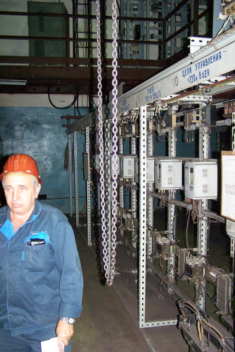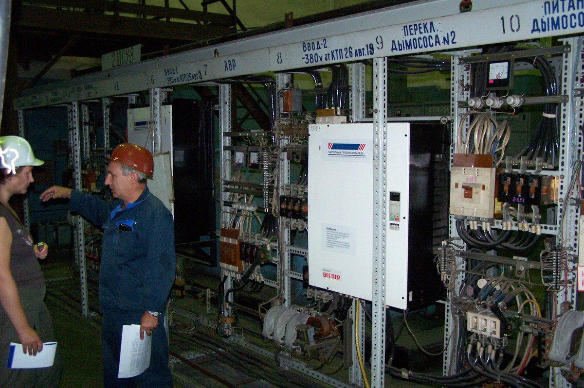 Таганрогский металлургический завод насчитывает 110 лет истории. Его территорию даже на машине долго объезжать, и работает на нем полгорода. Есть мартеновский цех, два цеха горячего трубопроката, цех по производству сварных труб и профиля. Мы побеседовали со старшим электриком трубопрокатного цеха № 1 Рыбальчуком Вячеславом Вячеславовичем и мастером по ремонту оборудования Семеновым Александром Леонидовичем. Они рассказали о работе частотных преобразователей «Компании Веспер» на их участке производства.