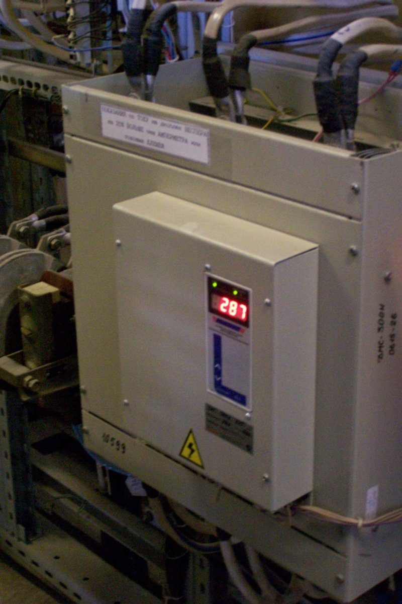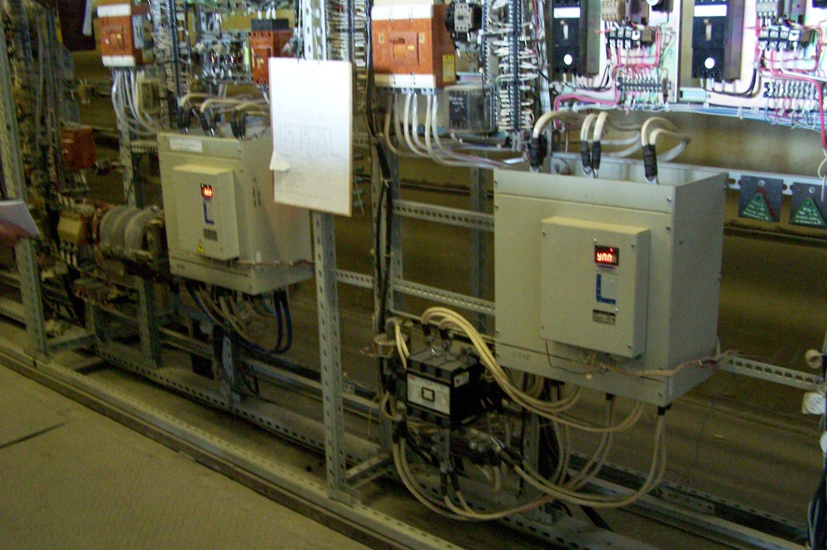 Приводами рольгангов на разных участках технологического цикла в цехе управляют частотные преобразователи разных фирм. Работу ленты, приводом которой «рулит» преобразователь фирмы Веспер, мы отправились смотреть в первую очередь. На входе в щелевую печь (недавно установленную) рольганги резко замедляют ход и затем плавно прижимают конец трубы, входящей в печь, к той, которая уже в печи. Обежав печь, можно наблюдать, как на выходе рольганги плавно отрывают трубы друг от друга, и дальше они следуют по лентам на участки обработки. Налюбовавшись на четкую работу рольгангов и золото огня в печи, мы отправились смотреть сами частотные преобразователи.
