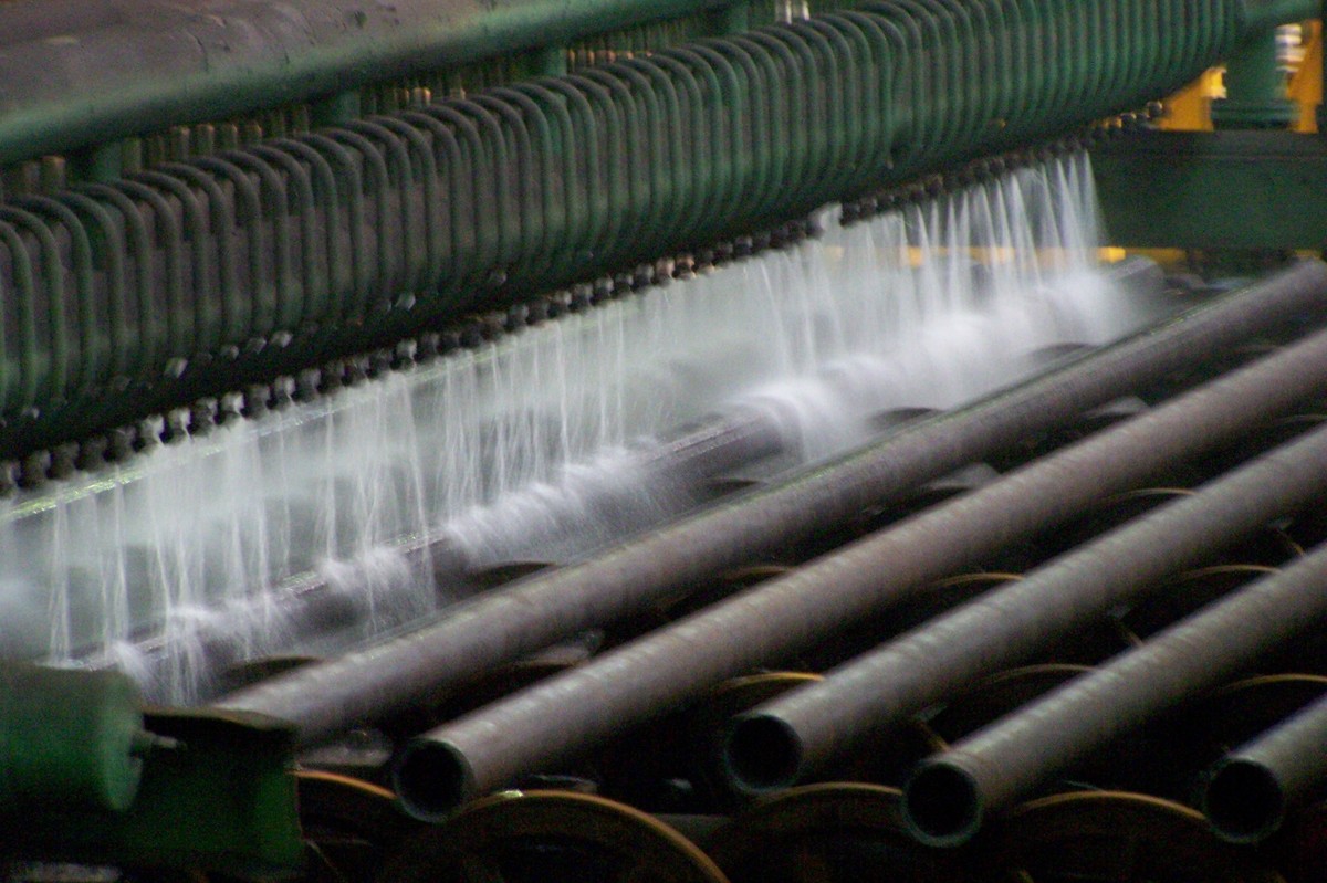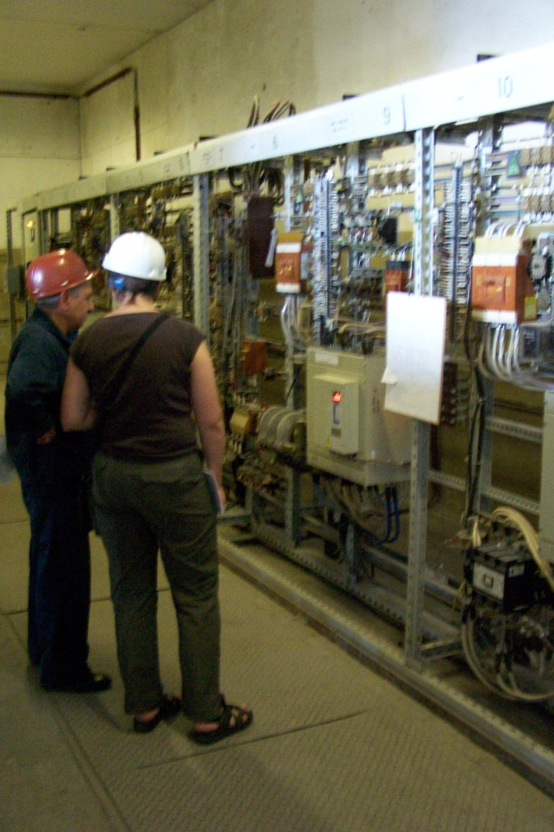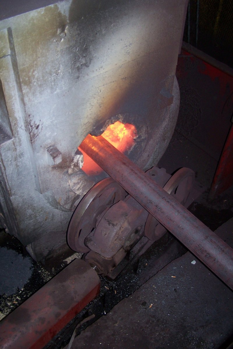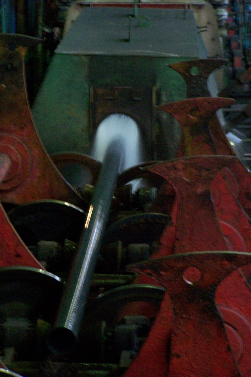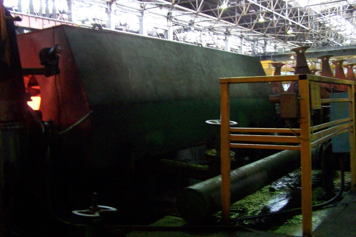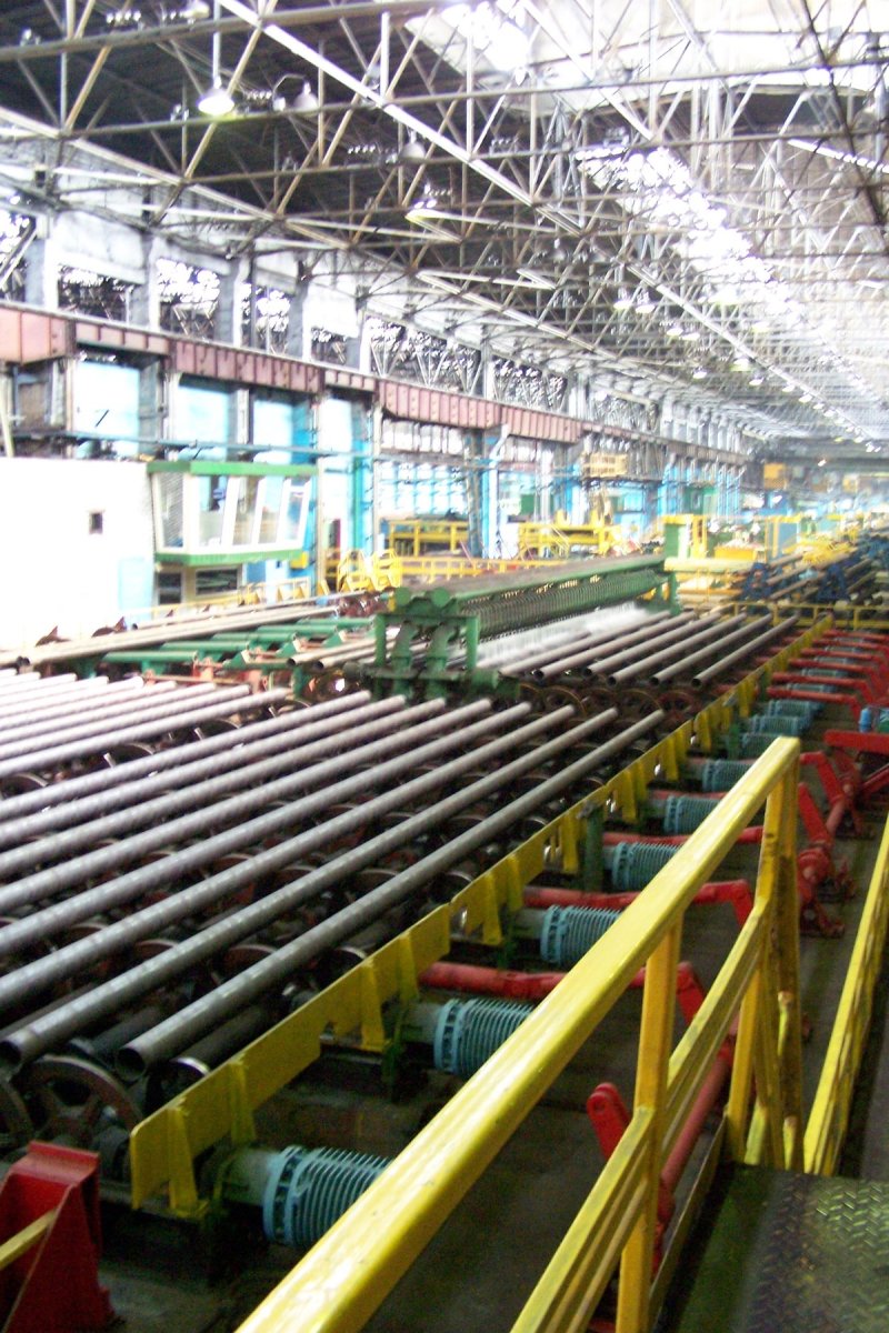 В ТПЦ-1 на сегодняшний день установлено более ста частотных преобразователей фирмы Веспер и восемь софт-стартеров. Оборудование по большей части управляет работой рольгангов различных участков, установлено также на дымососах и водяных насосах чистого цикла. Мы прошли в цех, чтобы воочию убедиться в работе оборудования, выпущенного фирмой. Все стандартные вопросы вылетели из головы, когда мы увидели этот масштаб: высокое помещение цеха, протянувшегося на сотни метров (общая длина цеха 1200 метров), беспрерывно катящиеся по рольгангам и транспортерам трубы, жар от закалочных печей, мерные удары поршня, пробивающего железные заготовки. Цех горячего трубопроката — это впечатляющее зрелище!