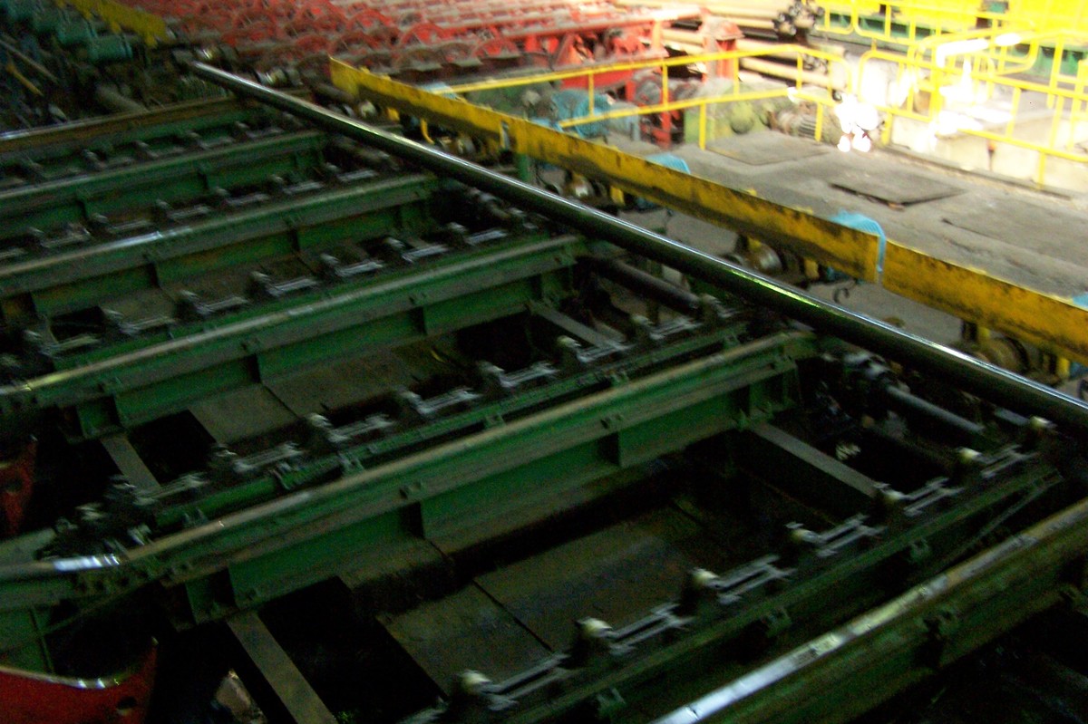 В.Р: Задача частотного регулирования индивидуальных приводов у нас возникла при реконструкции термического участка. Строилась новая щелевая закалочная печь, и возникли технические проблемы следующего характера: нужно было организовать догон трубы в зоне загрузки печи таким образом, чтобы трубы шли встык, а на выходе, по завершении закалки — отрыв трубы. Соответственно, скорость рольганга загрузки и скорость на выходе из печи должны отличаться от скорости движения трубы в печи. Кроме того, линейная скорость перемещения трубы зависит от калибра. Все эти задачи можно было решить только применением частотного регулирования привода.
